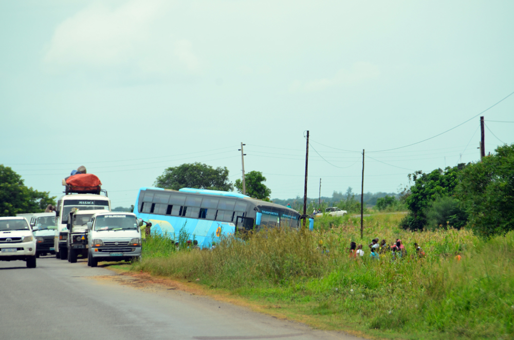 Today we drove to Maputo, we had a Couchsurfing friend that will host us there. So we were on the main road to Maputo. As closer we got to Maputo, as more people and cars were around and more traffic accidents. Here there was a bus gone off the road: